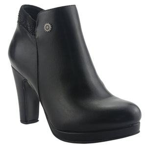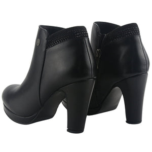 Zapato Mujer Casual Bambina-21 Color Negro de Capellada Sintetico con Forro Textil y Planta de Goma, su Taco mide 10 cm aprox, su Plataforma 2 cm aprox, su Caña 9 cm aprox, Contorno de pantorrilla 30 cm aprox y su Tipo de Cierre es Cierre