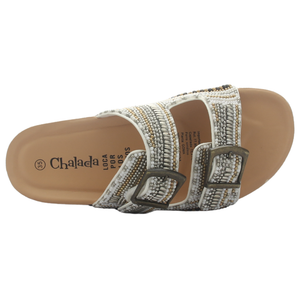 Sandalia de Mujer de color Blanco con un estilo Casual, Marca Chalada el material de su capellada es textil, y el de su interior es sintetico, su ajuste es abierto, su capellada tiene un acabado texturizado, ademas la altura de su plataforma es de 5 cm