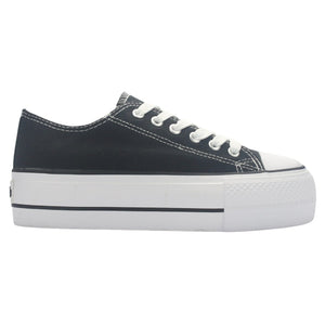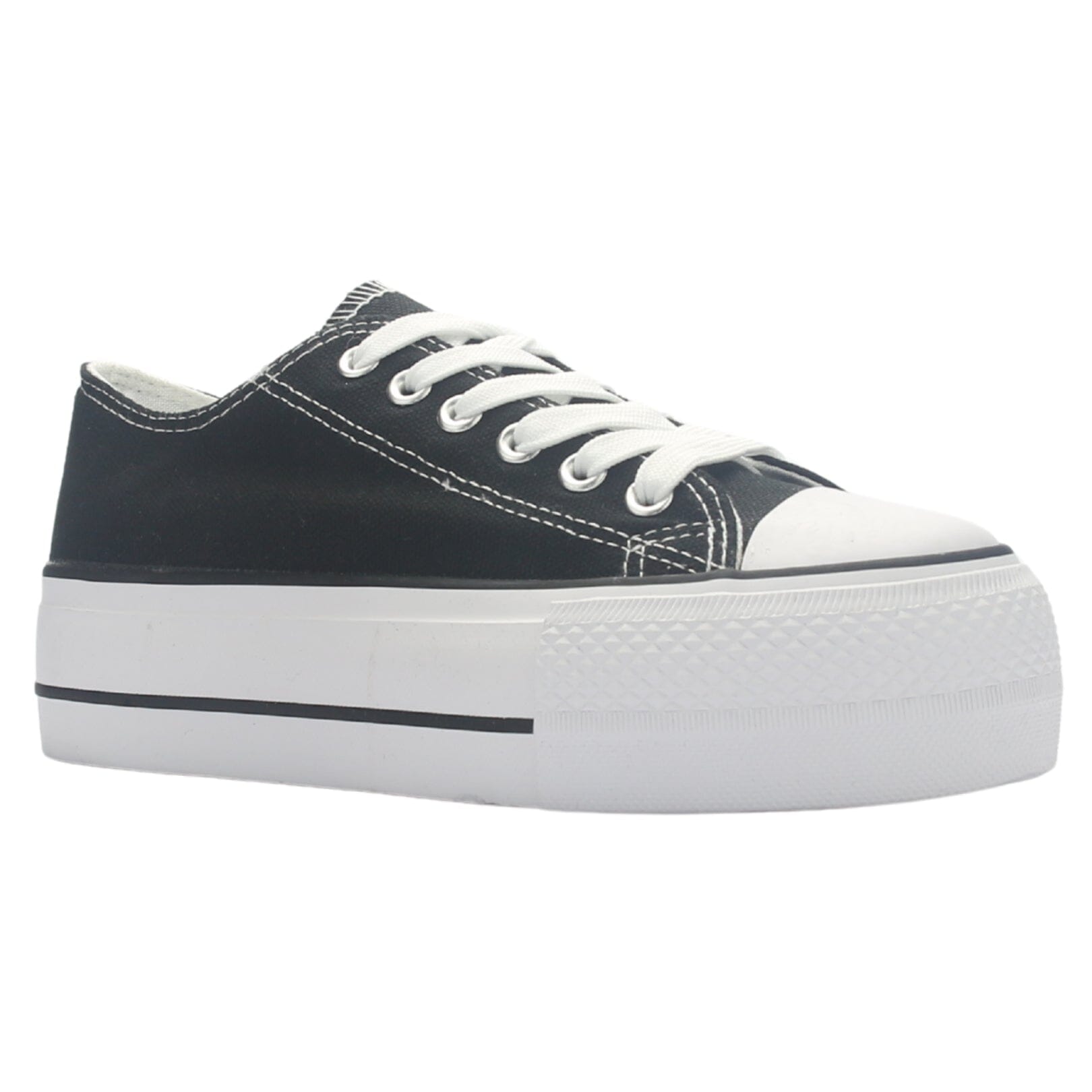 Zapatilla Chalada Mujer Cruni‑1 en color negro, perfecta para un look urbano funcional y moderno. Su discreta plataforma de aproximadamente 4 cm entrega comodidad diaria sin renunciar al estilo.