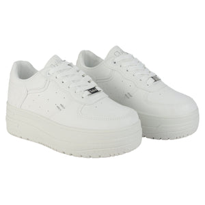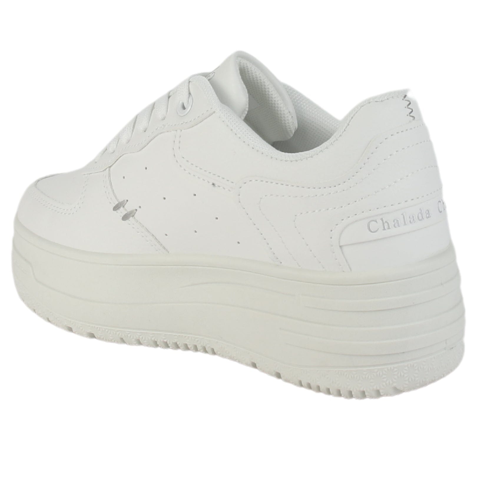 Zapatilla Chalada Mujer Mitsu-3 Blanco Urbano de Capellada Sintetico con forro Sintetico y planta de Goma y su Plataforma mide 6 cm aprox, la altura de su caña es estándar, el contorno de su bota es estándar