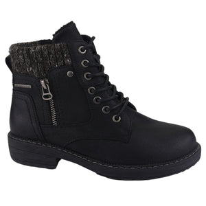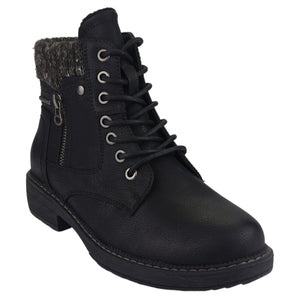 Botín Mujer Casual Army-50 Color Negro de Capellada Sintético con Forro Textil y Planta de Goma su Taco mide 3 cm. Aprox., su Caña 12 cm aprox, Contorno de pantorrilla 30 cm aprox y su Tipo de Cierre es Cierre