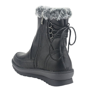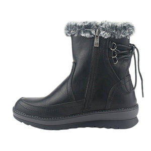 Botin Mujer Casual Winter-12 Color Negro de Capellada Sintetico con Forro Textil y Planta de Goma, su Taco mide No Aplica, su Plataforma 2 cm aprox, su Caña 16 cm aprox, Contorno de pantorrilla 30 cm aprox y su Tipo de Cierre es Cierre