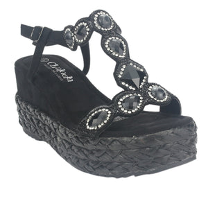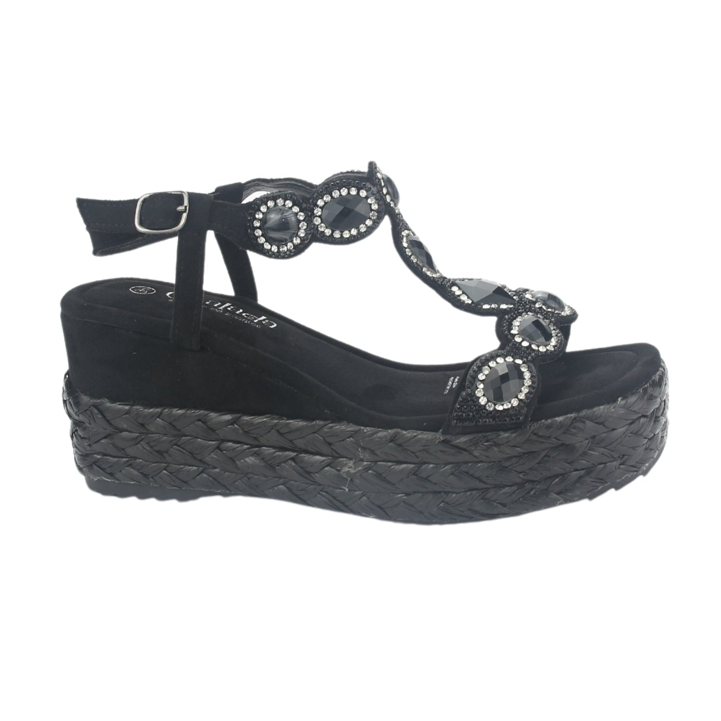 Sandalia Mujer Plataforma Pole-1 Color Negro de Capellada Sintetico con Forro Sintetico y Planta de Goma su Plataforma mide 8 cm. Aprox.