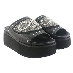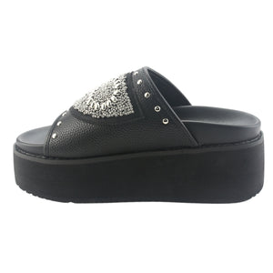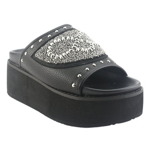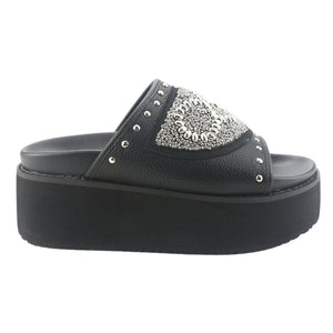 Sandalia Mujer Casual Viru-34 Color Negro de Capellada Sintetico con Forro Sintetico y Planta de Goma y su Plataforma mide 9 cm. Aprox.