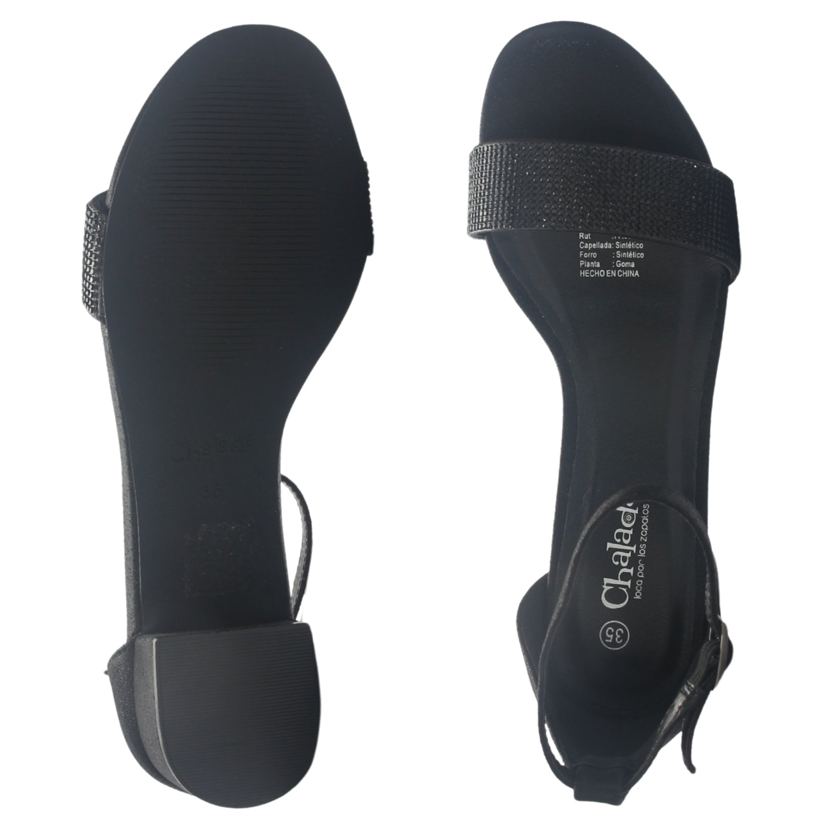 Sandalia Mujer Chalada Fadia-4 Negro Casual de Capellada Sintetica con forro Textil y planta de Goma y su Taco mide 4 cm aprox