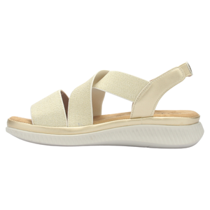 Sandalia Mujer Chalada Malibu-1 Dorado Casual de Capellada Sintetica con forro Textil y planta de Goma y su Taco mide 4 cm aprox