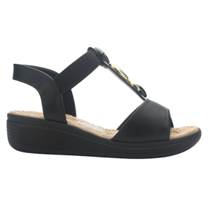 Sandalia Mujer Negro Comfortflex 2586404 Casual de Capellada Sintetica con forro Textil y planta de Goma y su Taco mide 4 cm aprox