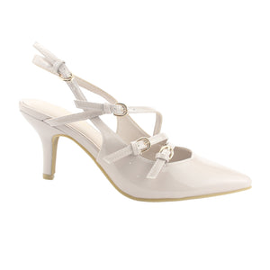 Zapato Mujer Moda Regent-28 Color Nude de Capellada Sintetico con Forro Textil y Planta de Goma y su Taco mide 7,5 cm. Aprox.