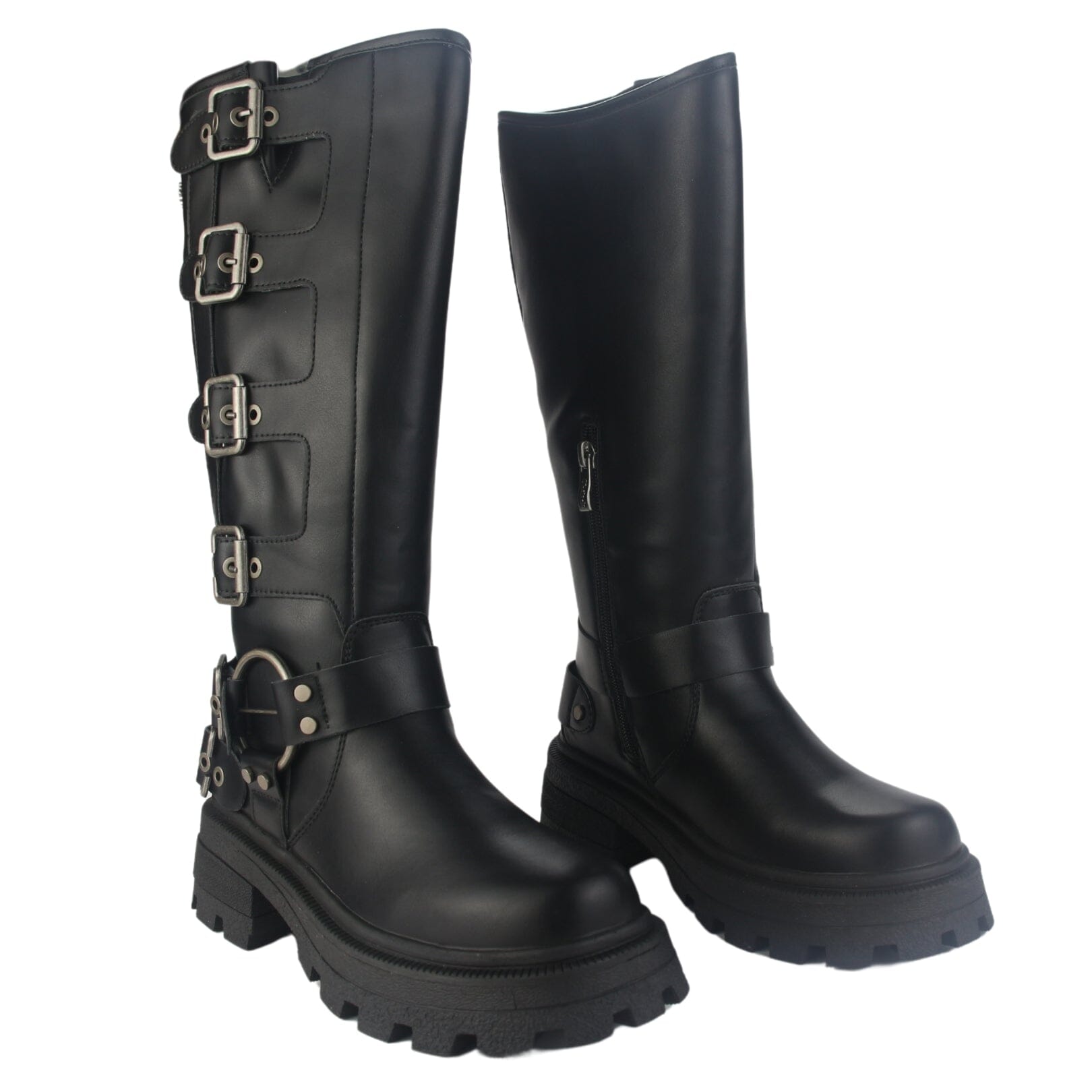 Bota Chalada Mujer Triva-1 Negro Casual de Capellada Sintetico con forro Textil y planta de Goma y su Plataforma mide 6 cm aprox, la altura de su caña es de 32 cm aprox, el contorno de su bota es de 38 cm aprox