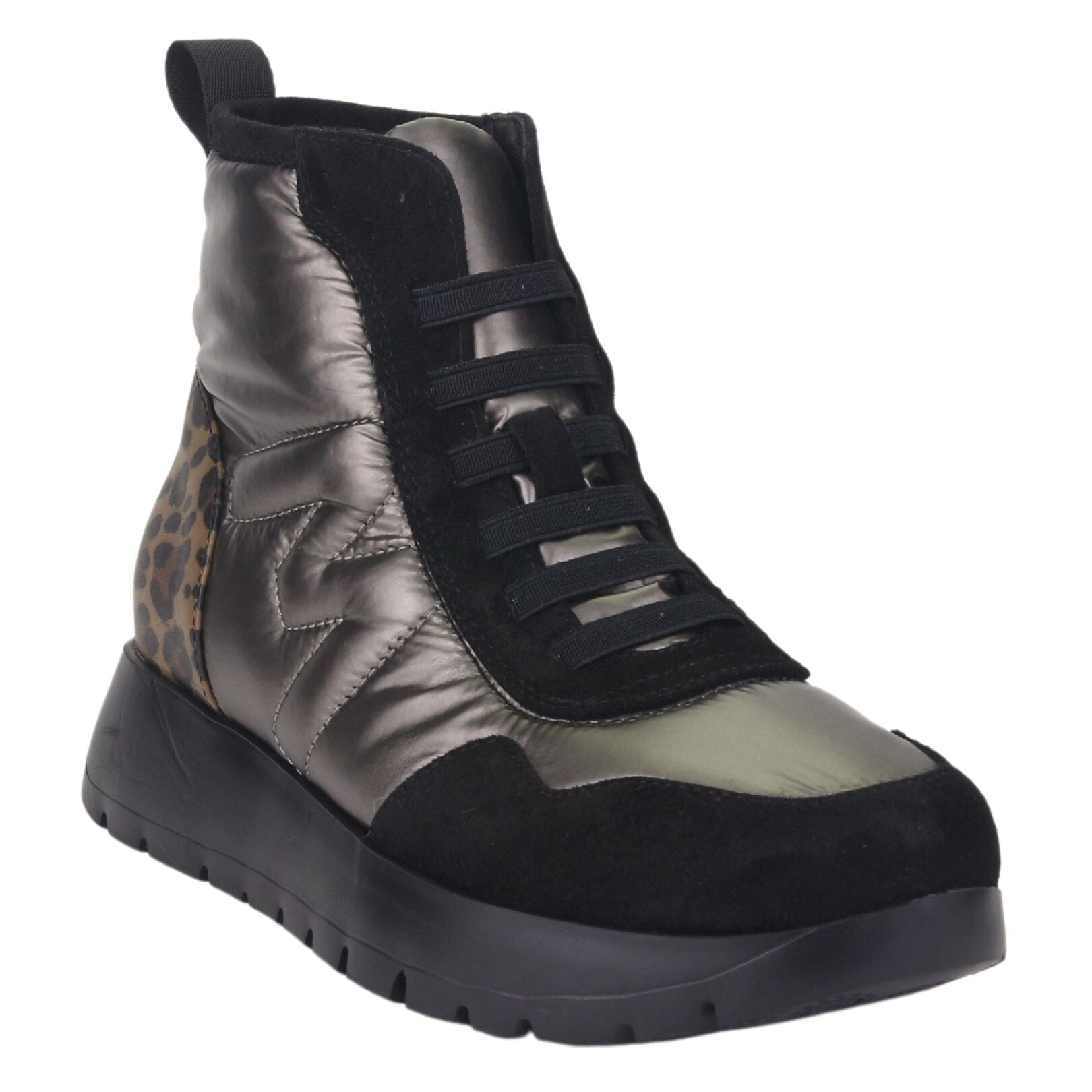 Botin Mujer Casual Wonder-4 Color Plateado de Capellada Textil con Forro Sintetico y Planta de Goma, su Plataforma 4 cm aprox, su Caña 12 cm aprox, Contorno de pantorrilla 30 cm aprox y su Tipo de Cierre es Cordones