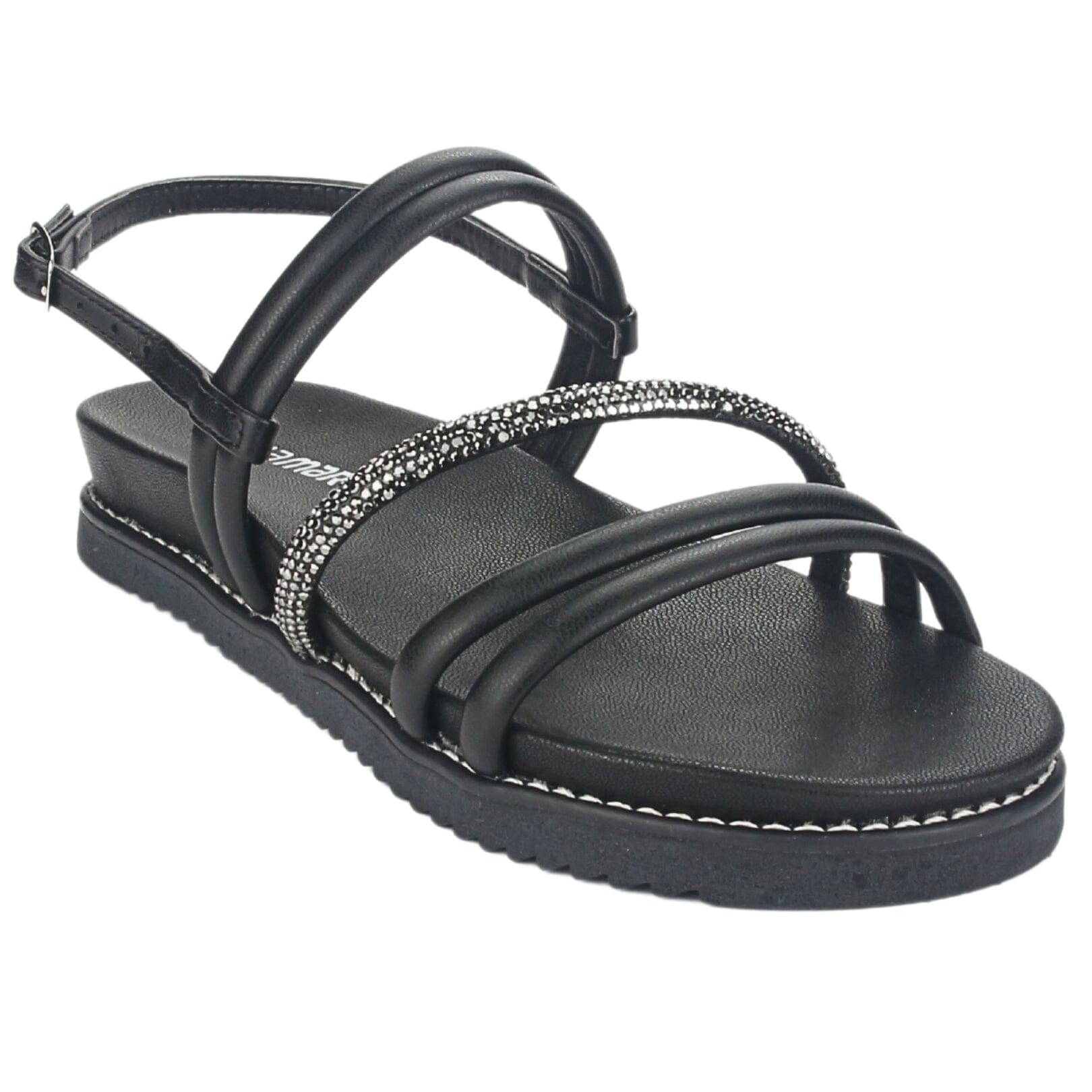 Sandalia Mujer Casual 23-10702 Color Negro de Capellada Sintetico con Forro Sintetico y Planta de Goma y su Tipo de Cierre es Hebilla