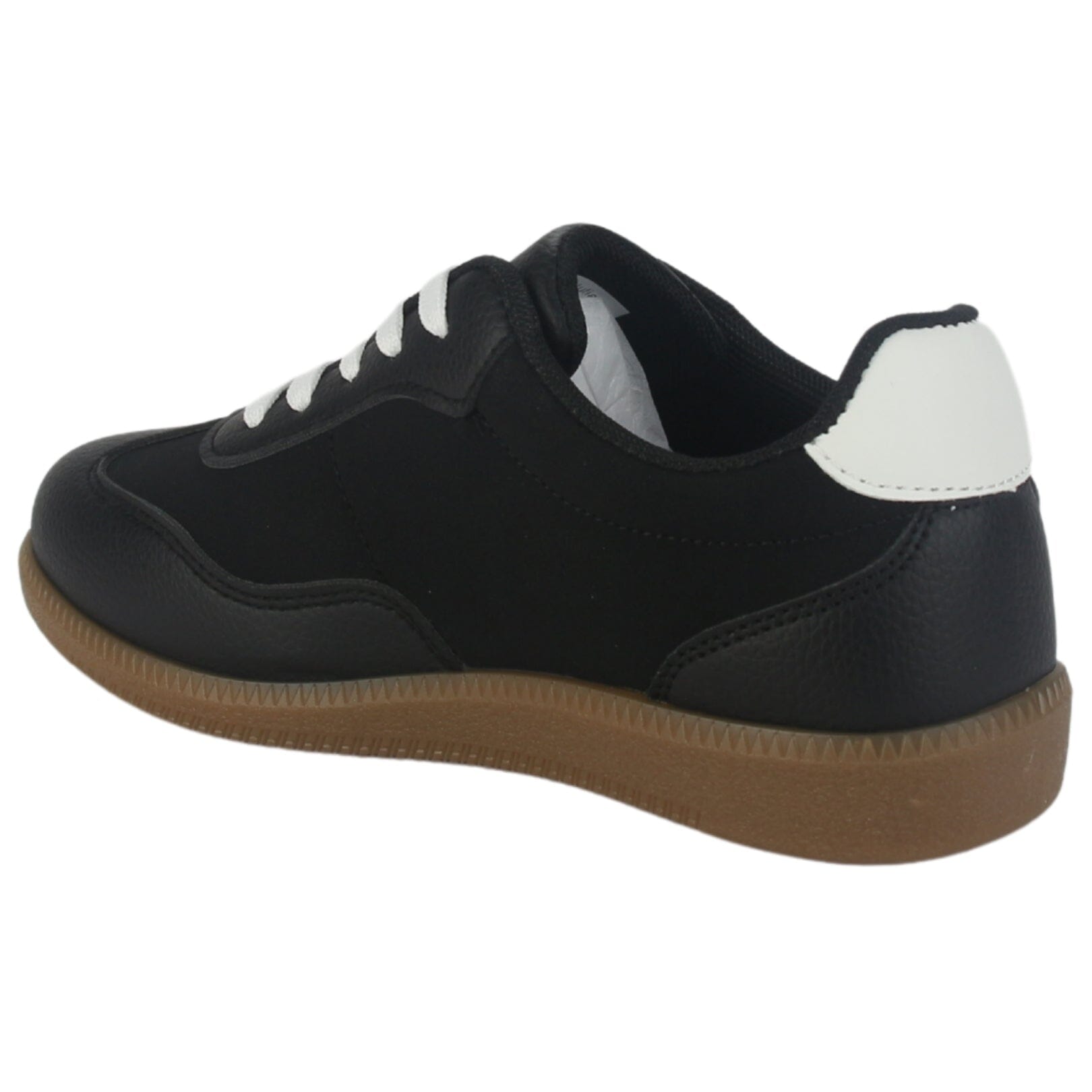 Zapatilla Chalada Mujer Antulow-1 Negro Urbano de Capellada Sintetico con forro Sintetico y planta de Goma y su Taco mide 3 cm aprox, la altura de su caña es estándar, el contorno de su bota es estándar