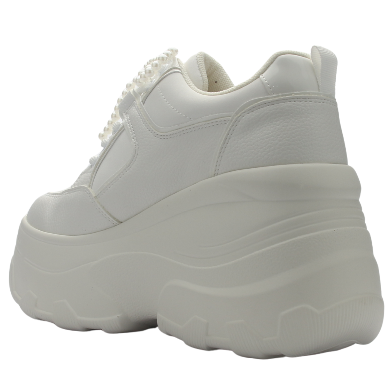 Zapatilla de Mujer de color Blanco con un estilo Urbano, Marca Chalada el material de su capellada es sintetica, y el de su interior es textil, su ajuste es con cordones, su color tiene un acabado matte, ademas la altura de su plataforma es de 10 cm
