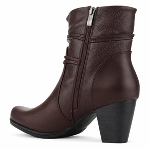Botín Burdeo Mujer Ceta, un botín casual que destaca por su estilo elegante y moderno, ideal para complementar outfits urbanos con personalidad. Su capellada en tono burdeo profundo combina diferentes texturas que aportan carácter y sofisticación al diseño.