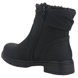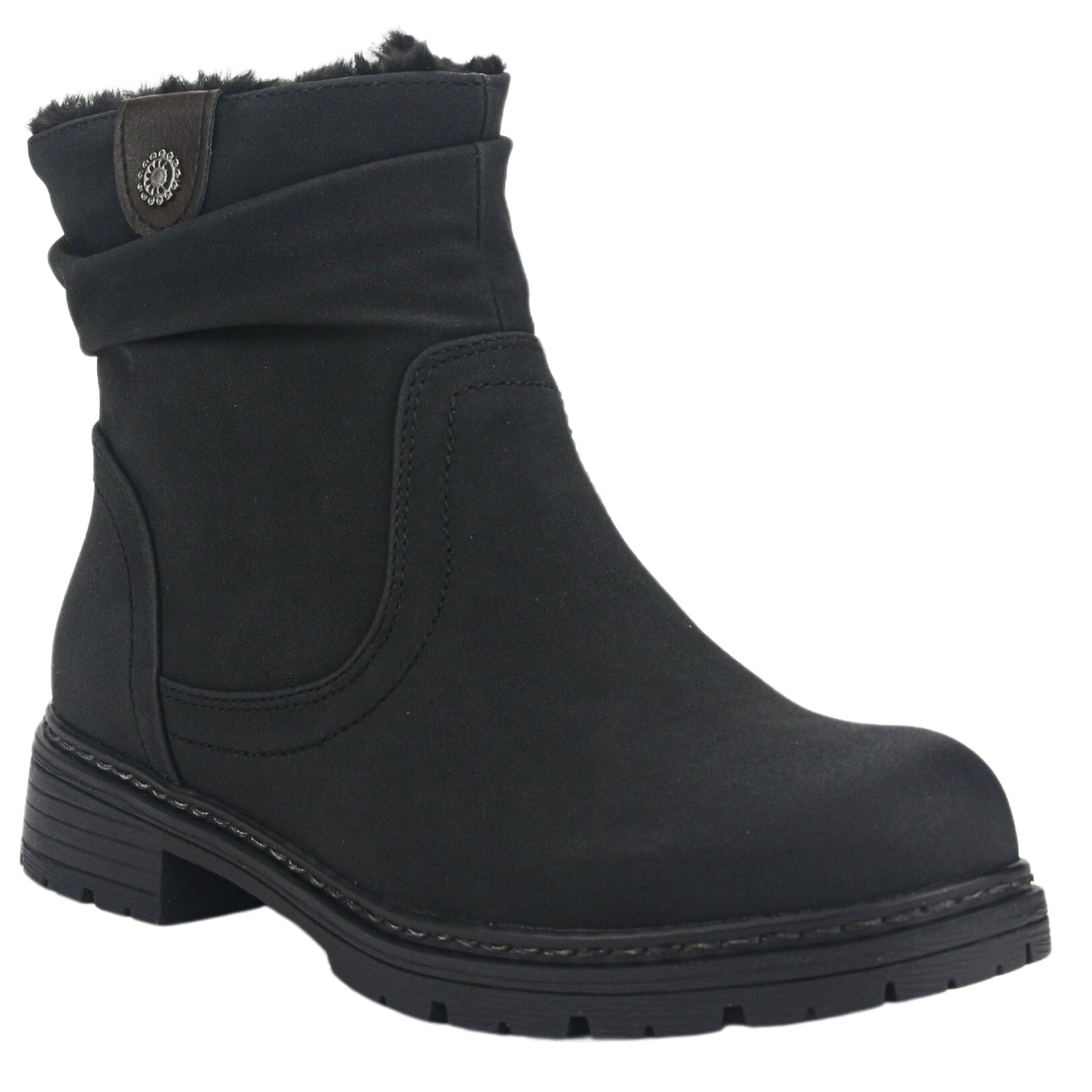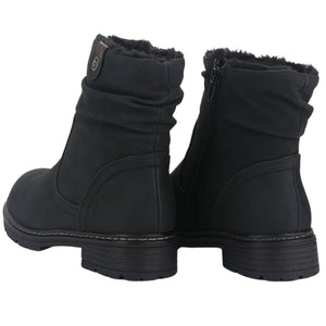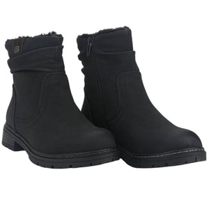 Botin Mujer Casual Andy-2 Color Negro de Capellada Sintetico con Forro Textil y Planta de Goma, su Taco mide 4 cm aprox, su Plataforma No Aplica, su Caña 15 cm aprox, Contorno de pantorrilla 33 cm aprox y su Tipo de Cierre es Cierre