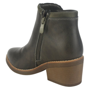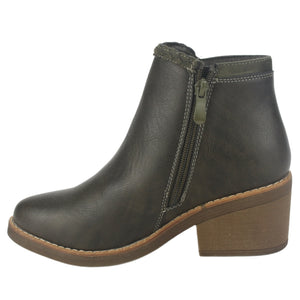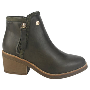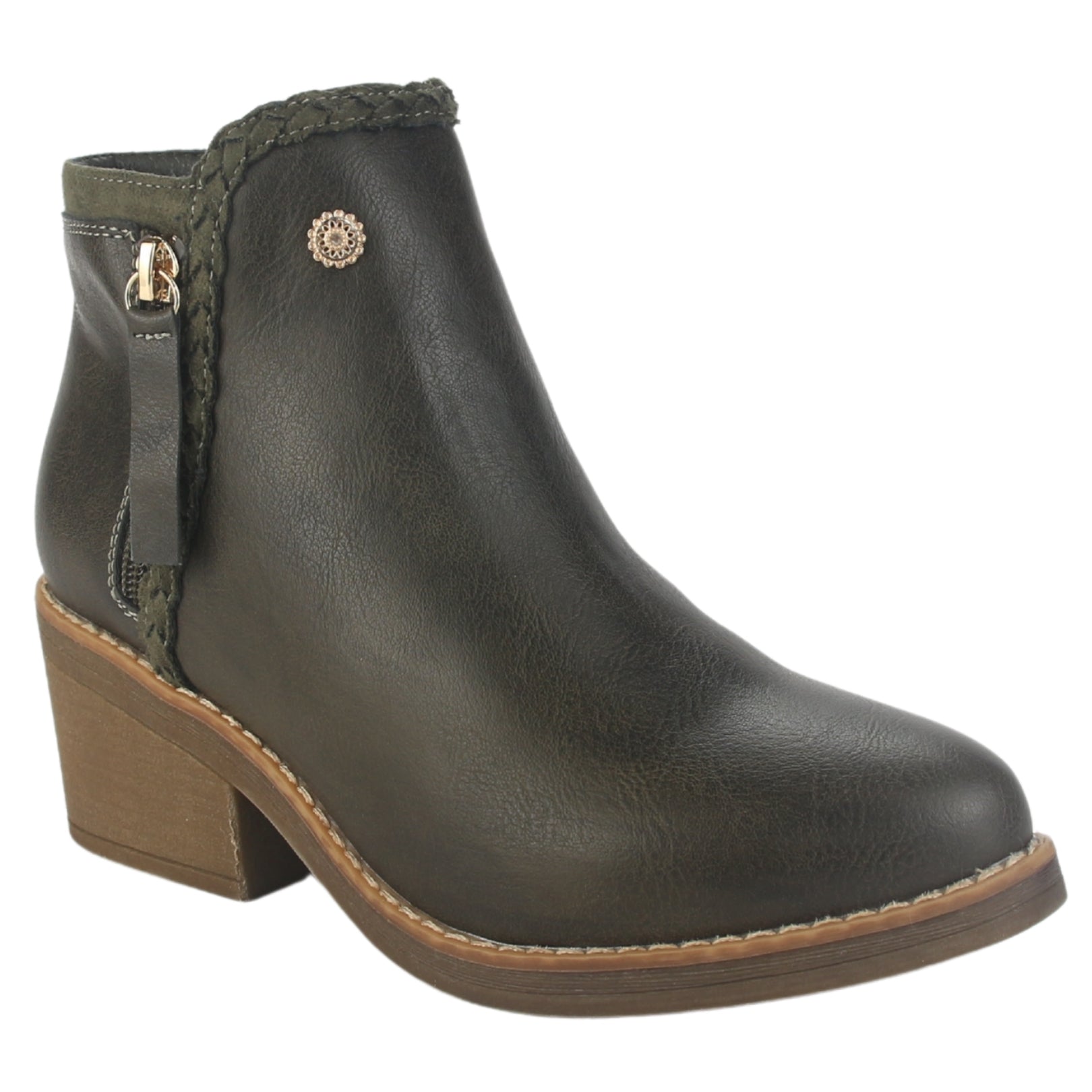 Botin Chalada Mujer Camp-50 Oliva Casual de Capellada Sintetico con forro Sintetico y planta de Goma y su Taco mide 6 cm aprox, la altura de su caña es 10 cm aprox, el contorno de su bota es 28 cm aprox