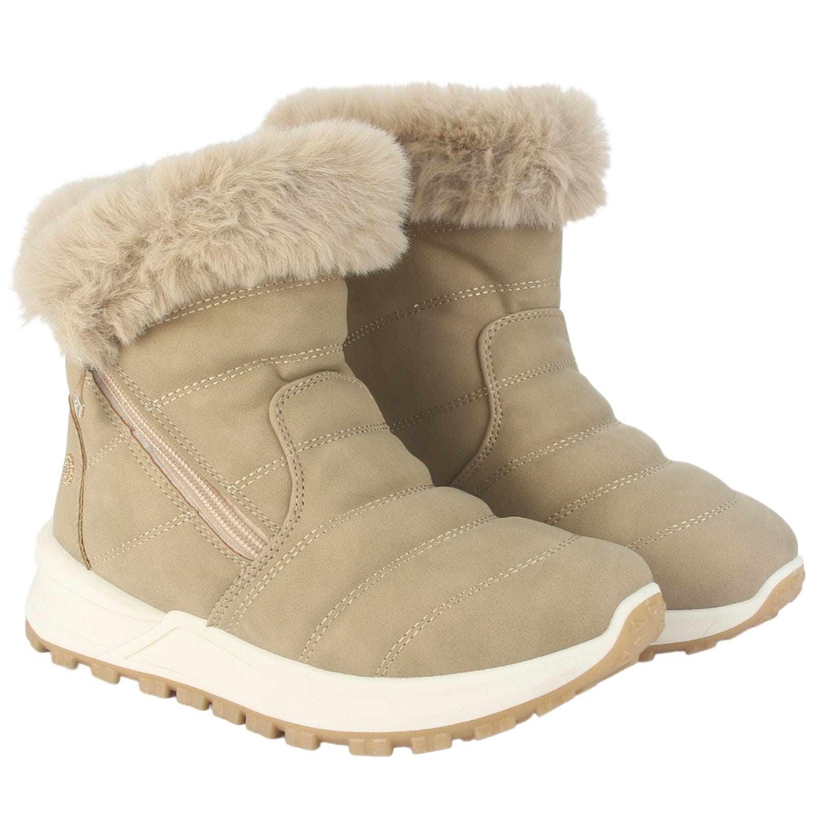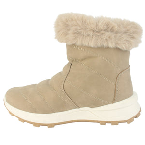 Botin Chalada Mujer Laica-1 Beige Casual de Capellada Sintetico con forro Sintetico y planta de Goma y su Plataforma mide 5 cm aprox, la altura de su caña es 12 cm aprox, el contorno de su bota es 30 cm aprox