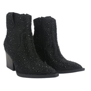 Botin Mujer Casual Wayra-1 Color Negro de Capellada Sintetico con Forro Textil y Planta de Goma, su Taco mide 8 cm aprox, su Plataforma No aplica, su Caña 14 cm aprox, Contorno de pantorrilla 28 cm aprox y su Tipo de Cierre es Cierre
