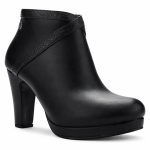 Botín Negro Mujer Bambina, un esencial casual que mezcla elegancia urbana con detalles modernos. Su capellada sintética en eco cuero con acabados texturizados tipo snake aporta un estilo dinámico y sofisticado, mientras el cierre lateral facilita el calce y complementa su diseño contemporáneo con practicidad.