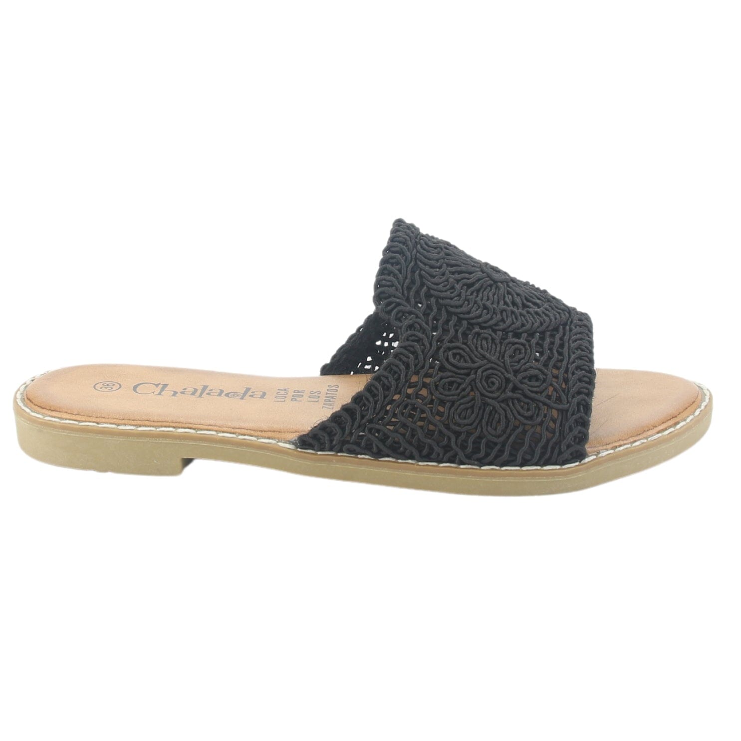 Sandalia Mujer Casual Creta-19 Color Negro de Capellada Sintetico con Forro Sintetico y Planta de Goma y su Taco mide 2 cm. Aprox.