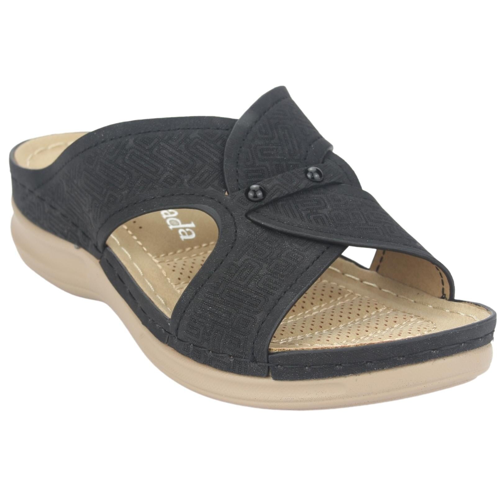 Sandalia Mujer Casual Kon-16 Color Negro de Capellada Sintetico con Forro Sintetico y Planta de Goma, su Plataforma mide 3 cm aprox