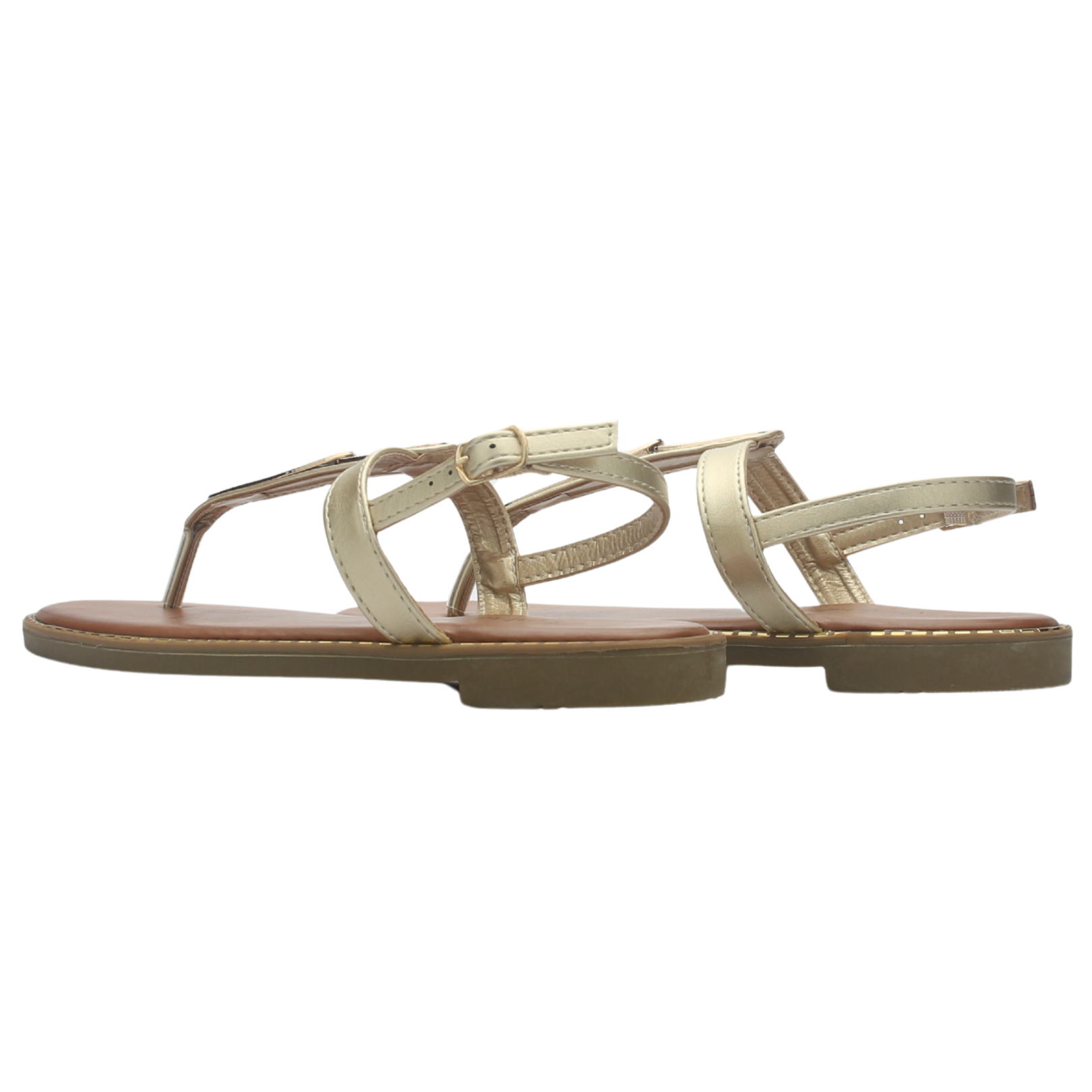 Sandalia de Mujer de color Dorado con un estilo Casual, Marca Chalada el material de su capellada es sintetica, al igual que, su interior, su ajuste es con hebillas, su capellada tiene un acabado metalizado, ademas su planta es plana