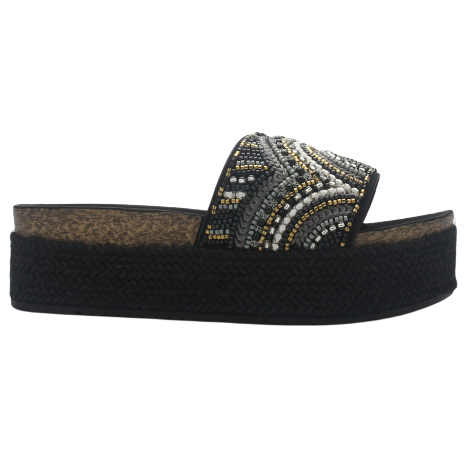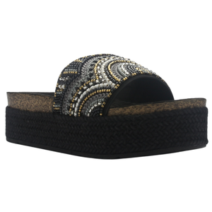 Sandalia de Mujer de color Negro con un estilo Casual, Marca Chalada el material de su capellada es textil, y el de su interior es sintetico, su ajuste es abierto, su capellada tiene un acabado texturizado, ademas la altura de su plataforma es de 5 cm