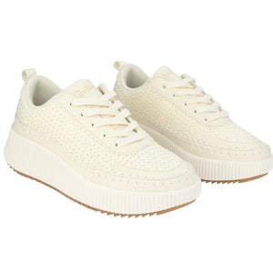 Zapatilla Mujer Urbano Iver-10 Color Beige de Capellada Textil con Forro Textil y Planta de Goma, su Plataforma 6 cm aprox y su Tipo de Cierre es Cordones